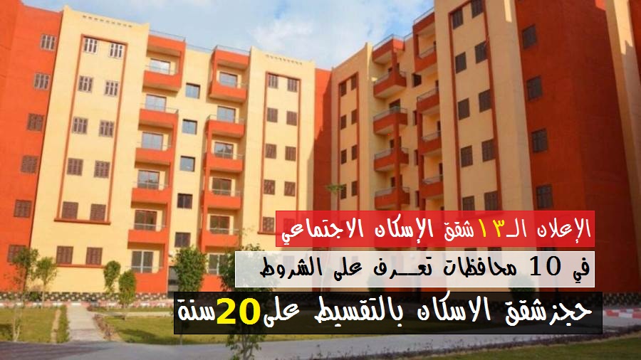 بالتقسيط لمدة 20 سنة تفاصيل حجز شقق الاسكان الاجتماعي الاعلان الـ 13 فى 10 محافظات